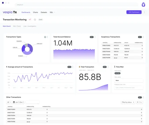 Real-time transaction monitoring. An AI-plus-rules engine watches payments against 300 + ready-made scenarios, suggests new rules when patterns shift, and can escalate cases straight to the regulator.